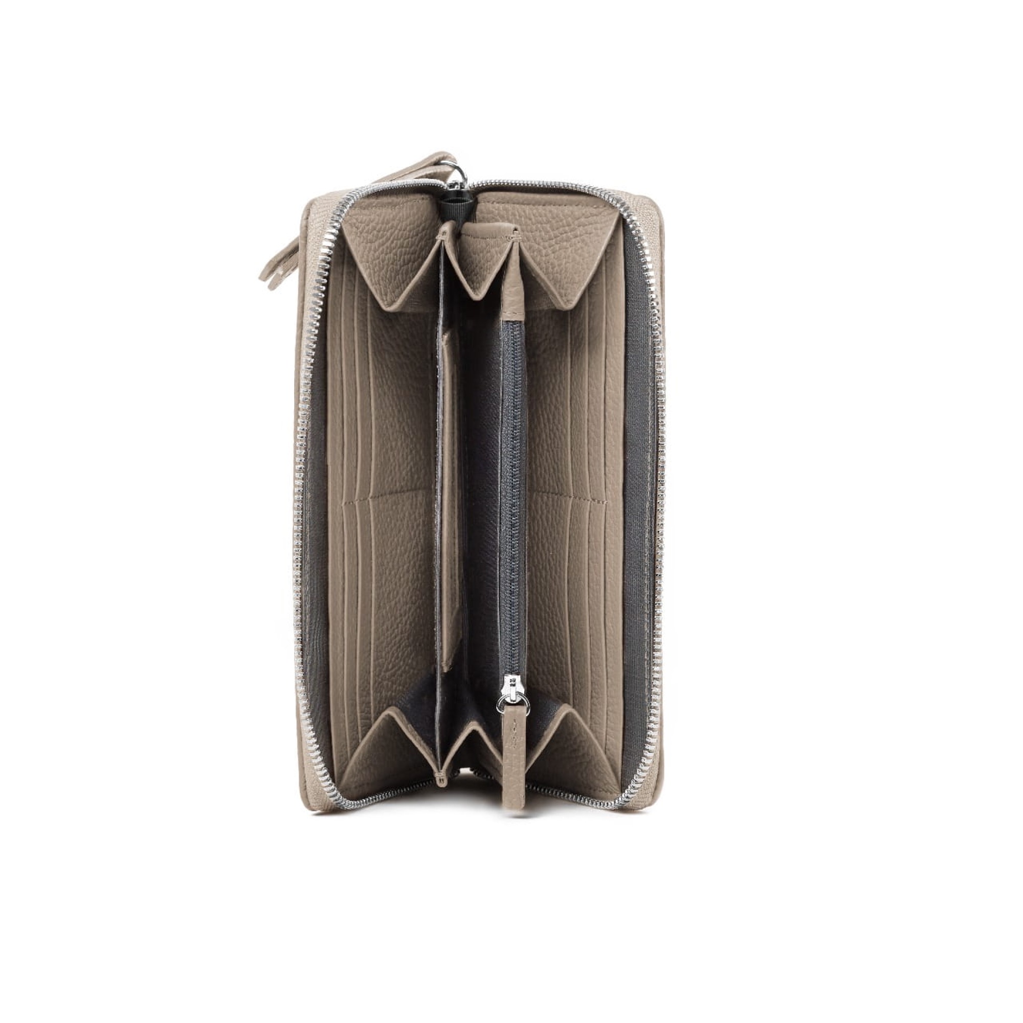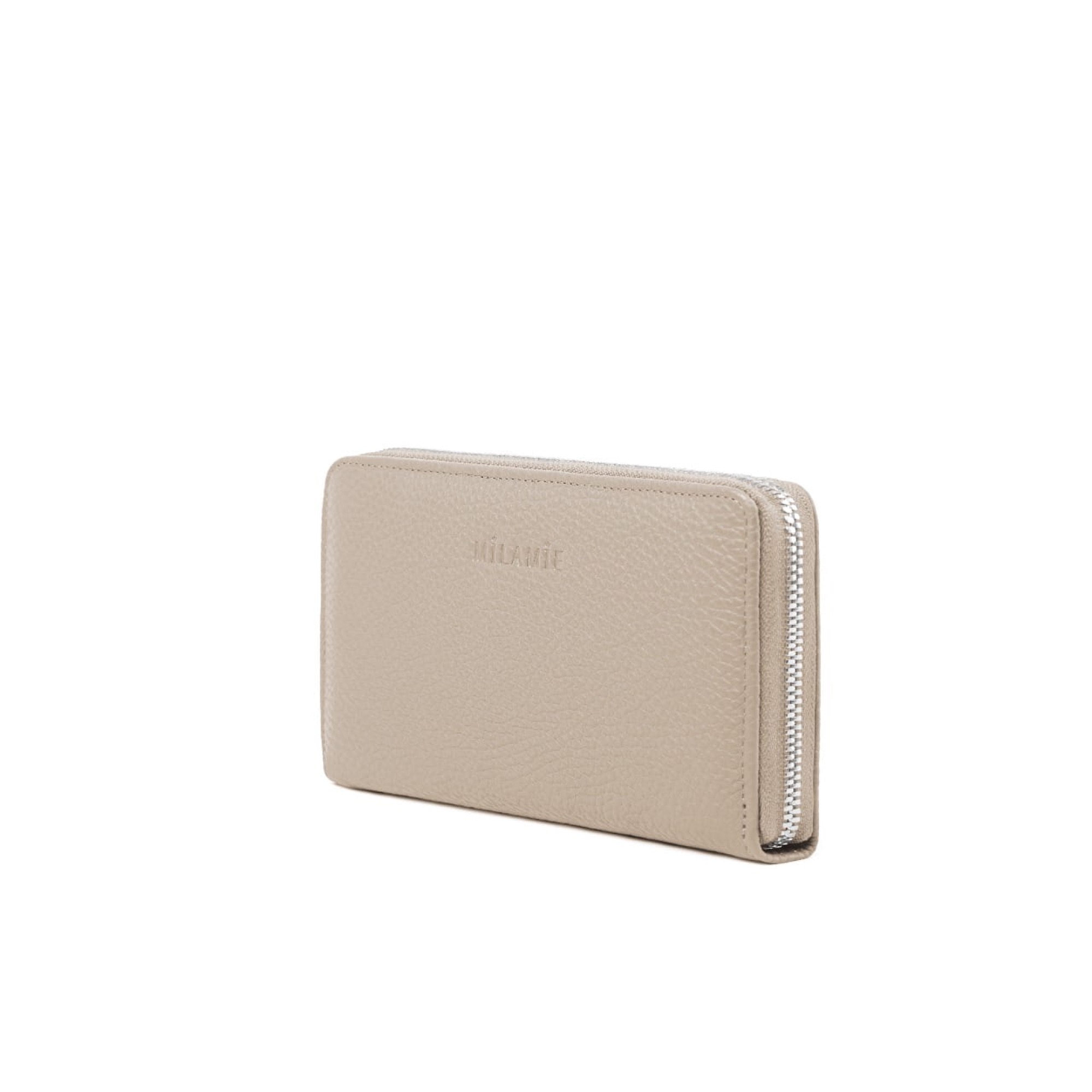 Beż piaskowa | Portfel damski | Metalowy suwak | 12 miejsc na karty | Kieszeń wewnętrzna na suwak | Włoska skóra