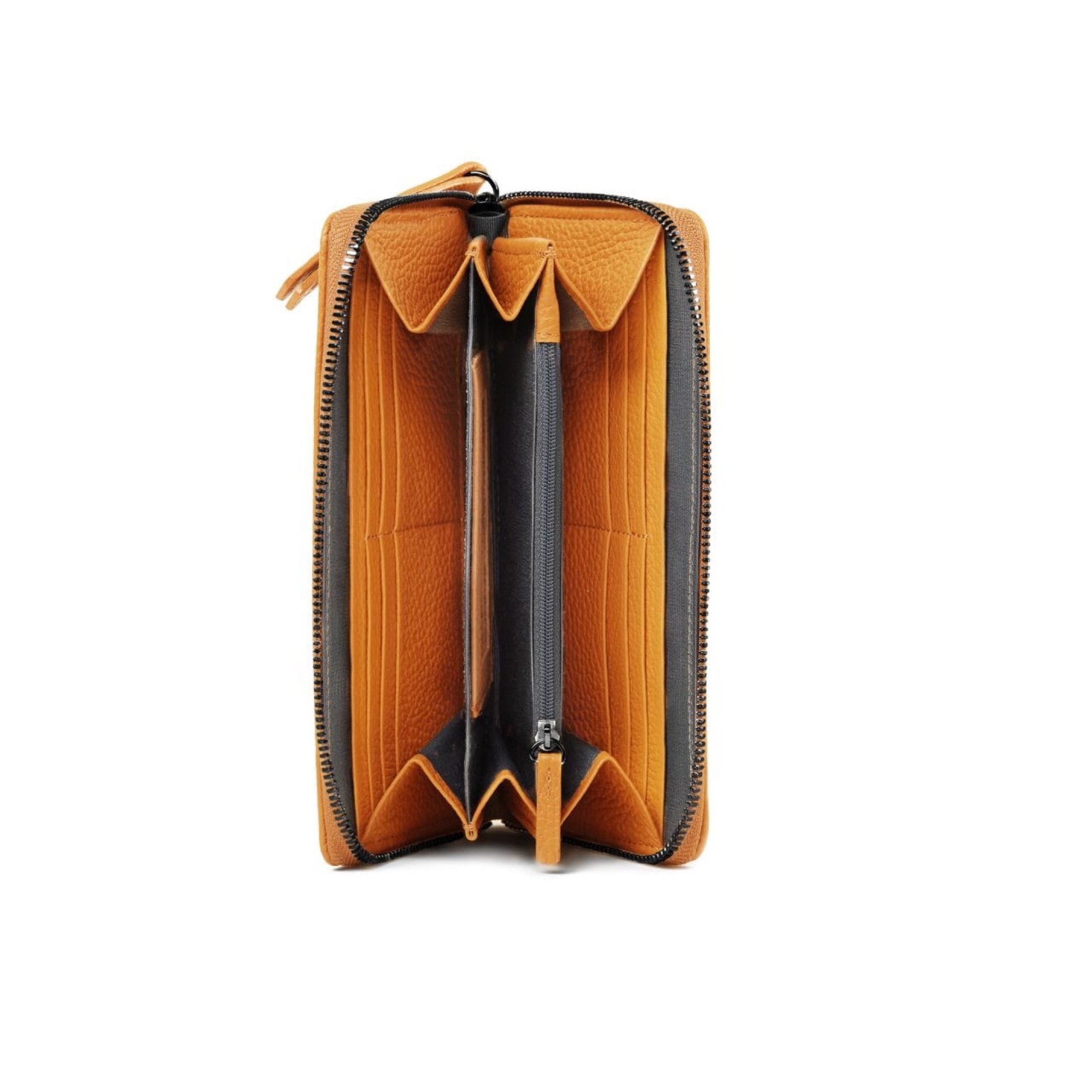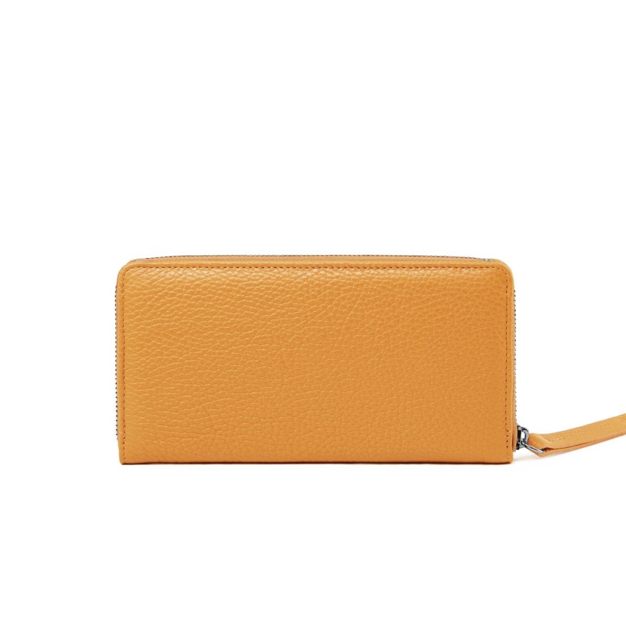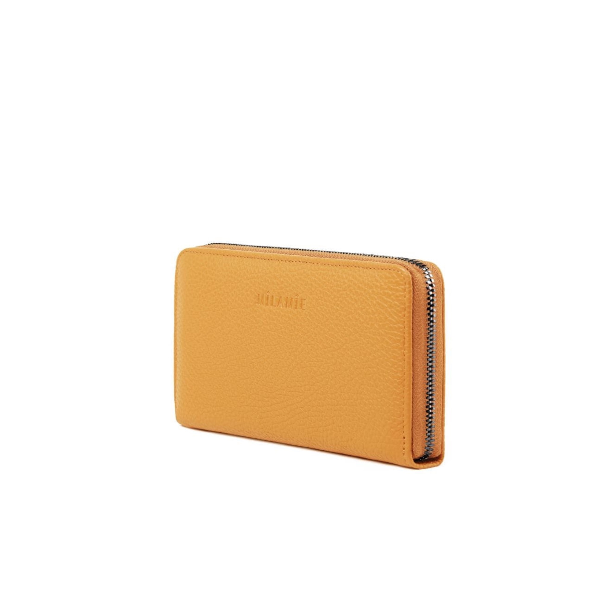 Musztardowy | Portfel damski | Metalowy suwak | 12 miejsc na karty | Kieszeń wewnętrzna na suwak | Włoska skóra