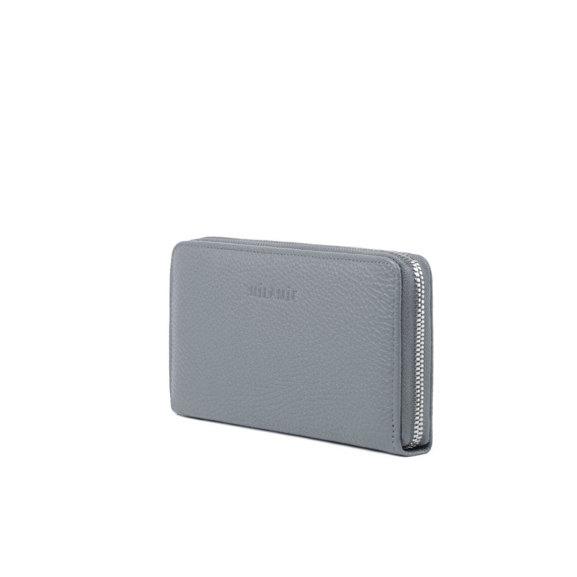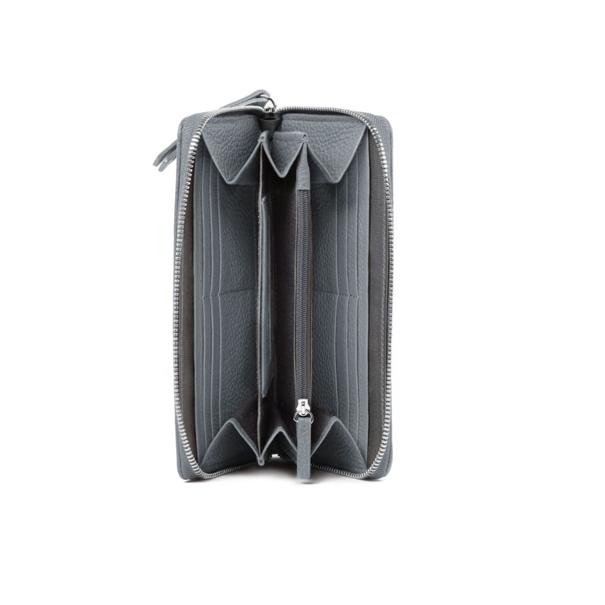 Gołębia szarość | Portfel damski | Metalowy suwak | 12 miejsc na karty | Kieszeń wewnętrzna na suwak | Włoska skóra