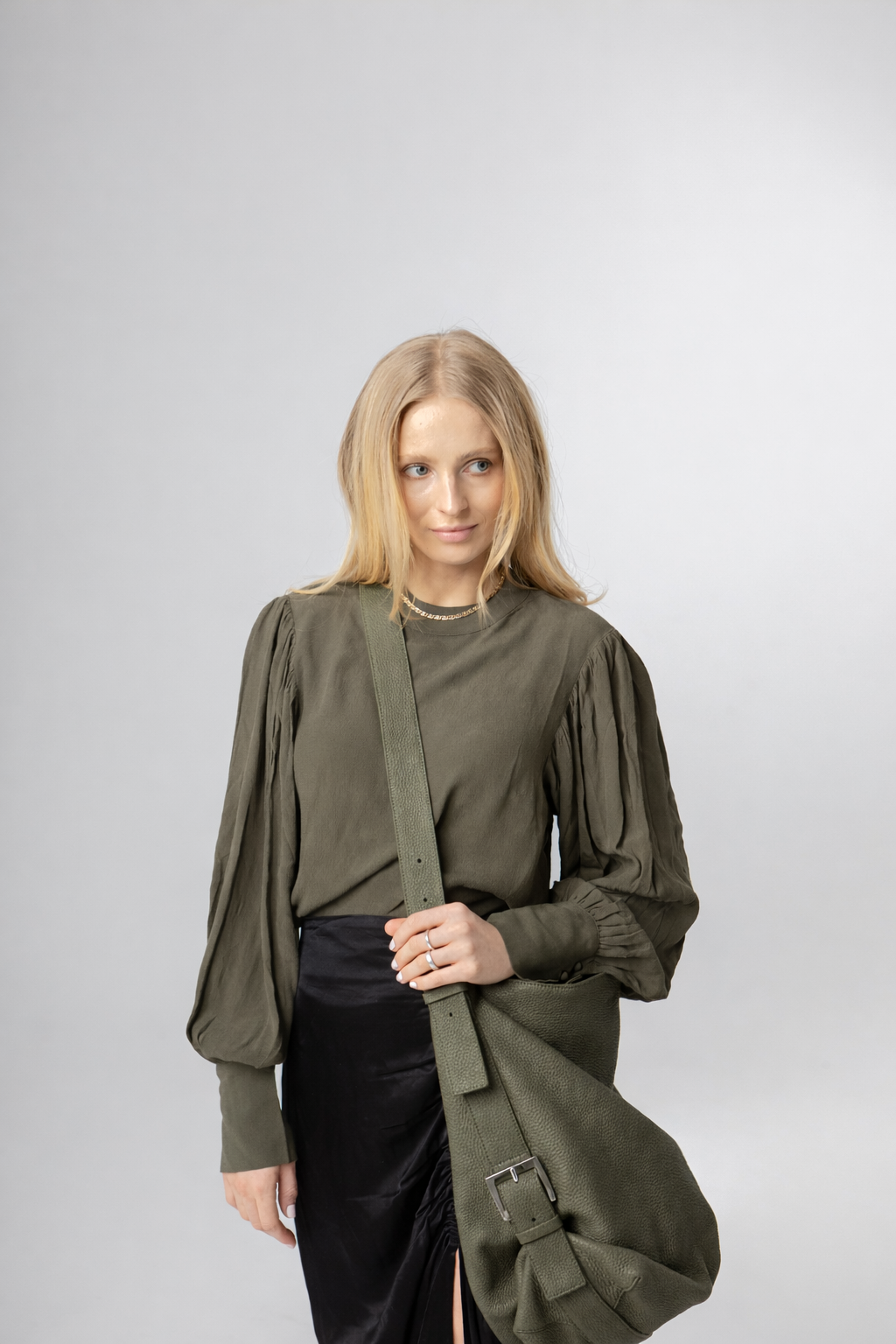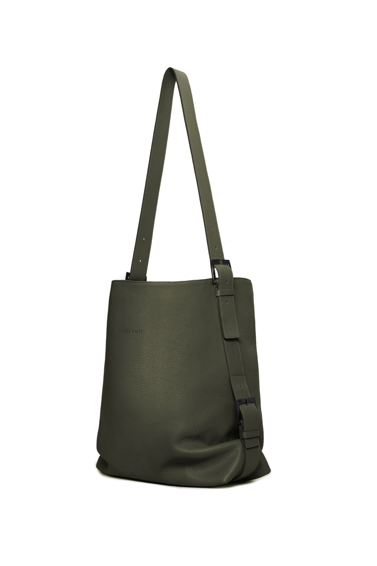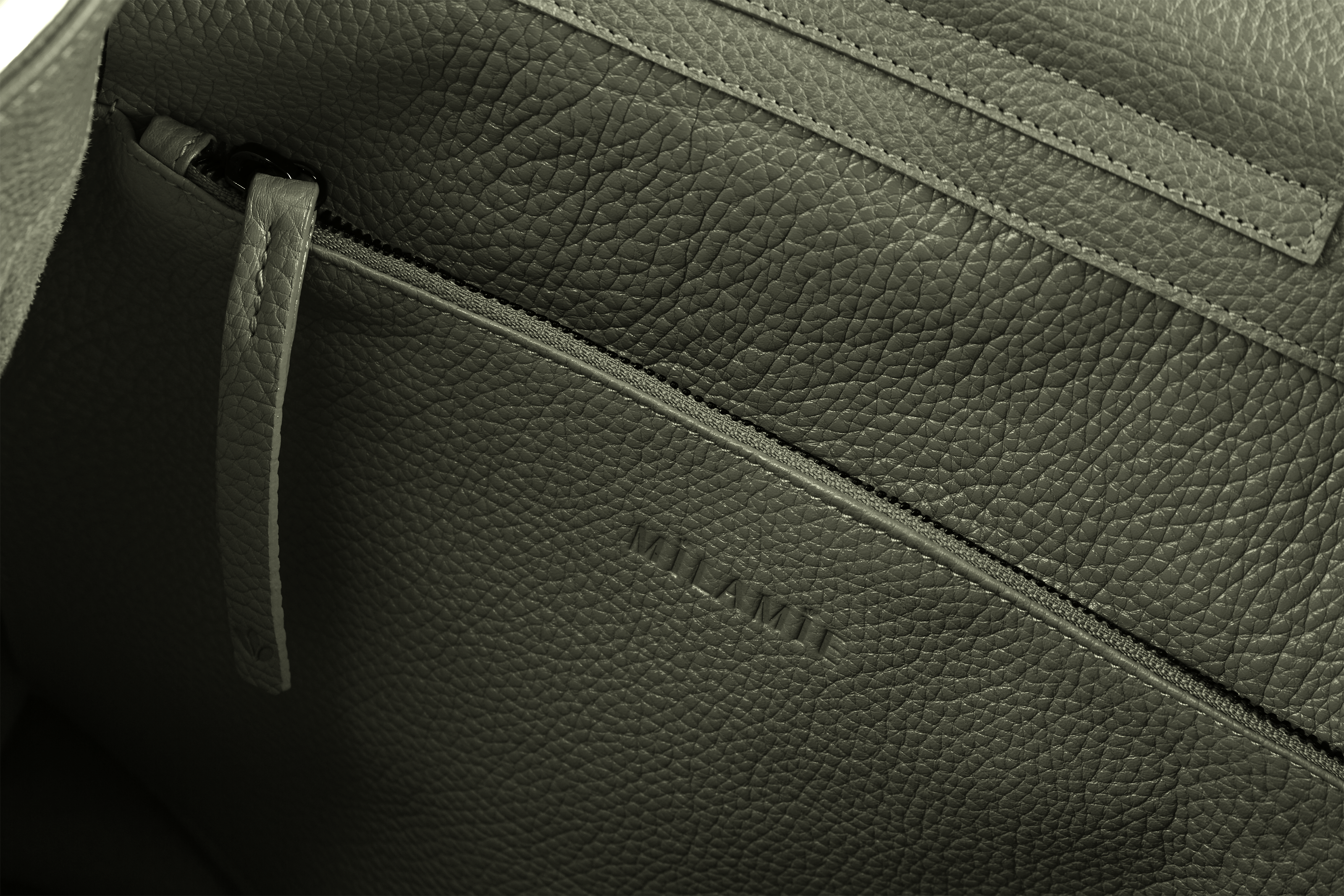 Zieleń oliwkowa | Shopper Bag | Szeroki pasek (regulowany) | Kieszeń na suwak | Włoska skóra